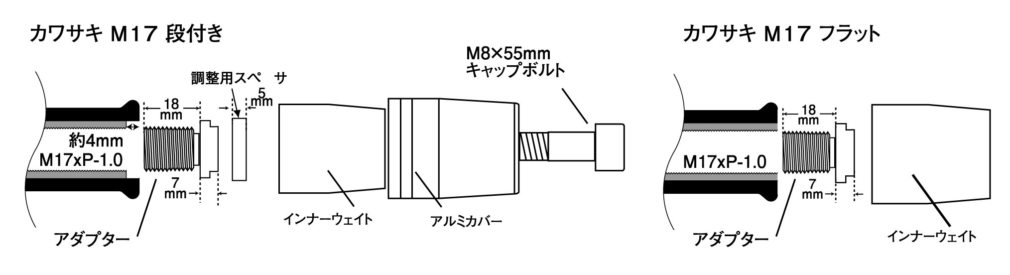 カワサキ純正ハンドル取付け部M17/P1.0用