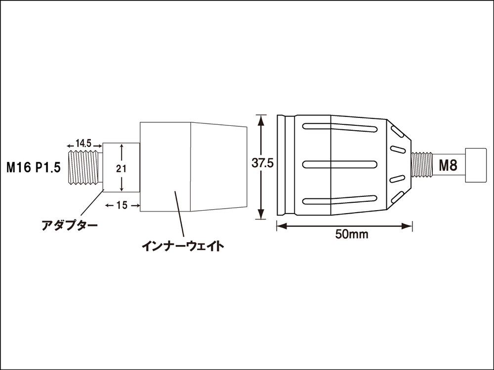 ヤマハ車純正16mmP-1.5タイプ(純正ハンドルバー用)