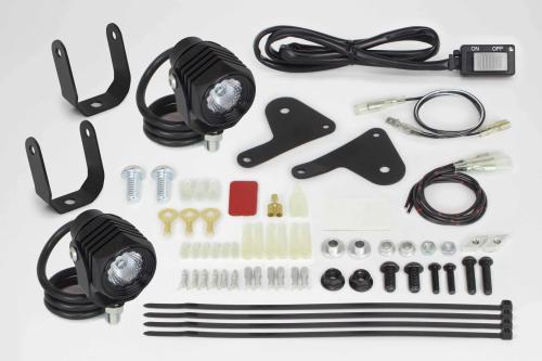 フォグランプをご使用頂く事で、濃い霧や激しい雨の時に、ヘッドライトでは照らせない部分を補い、走行時の視認性向上及び夜間走行時の安全性を高める事が出来ます。又、高輝度により夜間での車両の存在感を高め、他のライダーや車からの認識がしやすくなり、事故防止対策としても貢献します。照射範囲はスポット照射とフラット照射をバランスよく掛け合わす事により、ヘッドライトでは照らせない部分を補ってくれる照射範囲としました。本製品は車両のカウル加工や配線加工の必要が無く、キットの構成部品により、フォグランプを簡単に取付け出来ます。フォグランプ側のギボシ取付け加工有りフロント側のインナーフェンダー部に商品同梱のステーを用いてフォグランプを固定します。又、配線接続はサブコード類が付属している為、フォグランプ側の簡単なギボシ加工で車体に接続出来ます。※簡単なギボシ圧着加工が必要です。LEDチップは非常に高輝度ながら低消費電力(1灯約6.5W)を実現し、小排気量車など、発電量があまり大きくない車両であっても使用可能です。インジケーターランプ付きON/OFFスイッチ付属インジケーターランプを内蔵することで、目視でランプ点灯のON/OFFを確認することが可能なります。