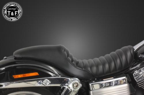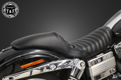 製品の仕様・シート素材:合皮製。・シートベース:FRP製。・シートインナー:発砲ウレタンフォームを使用。・シートカラー:ブラック。・取り付けステー:スチール製。ブラック仕上げ。製品の特徴・クッション性を失わず衝撃吸収性も非常に高い一体型ウレタンフォーム(スポンジ)を使用し、型崩れしにくく快適に乗る事が出来ます。・シートベースには軽量で頑丈なFRPを使用しております。・フォームと表皮の間には収縮するフィルムを包装し、防水面も考慮しております。■注意事項・シートインナー(発泡ウレタンフォーム)は防水用の収縮する透明フィルムで覆われています。この特殊なフィルムは押したり、引っ張ったりしても簡単に破れるようなことはありません。このフィルム加工をすることにより雨水がウレタンフォームまで浸水することはありません。しかしながら表面合皮の縫い目から雨水が浸水し、ウレタンフォームとの間には雨水が入る可能性はございます。ただし、ウレタンフォームまで浸水することはありませんので良く乾いた布なので表面の水をふき取って頂き、天日干しして頂ければすぐに乾燥いたします。※十分な防水対策は施されておりますが完全防水ではございませんのでご了承下さい。■適合不可モデル・ダイナ(〜2005年のモデル)。・ダイナワイドグライド(〜2005年のモデル)。・ダイナワイドグライド(2010年〜のモデル)。・ダイナファットボブ(FXDF)(2008年〜のモデル)。※これらのモデルは取付不可となりますのでご注意下さい。