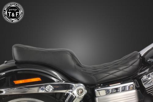 製品の仕様・シート素材:合皮製。・シートベース:FRP製。・シートインナー:発砲ウレタンフォームを使用。・シートカラー:ブラック。・取り付けステー:スチール製。ブラック仕上げ。製品の特徴・クッション性を失わず衝撃吸収性も非常に高い一体型ウレタンフォーム(スポンジ)を使用し、型崩れしにくく快適に乗る事が出来ます。・シートベースには軽量で頑丈なFRPを使用しております。・フォームと表皮の間には収縮するフィルムを包装し、防水面も考慮しております。■注意事項・シートインナー(発泡ウレタンフォーム)は防水用の収縮する透明フィルムで覆われています。この特殊なフィルムは押したり、引っ張ったりしても簡単に破れるようなことはありません。このフィルム加工をすることにより雨水がウレタンフォームまで浸水することはありません。しかしながら表面合皮の縫い目から雨水が浸水し、ウレタンフォームとの間には雨水が入る可能性はございます。ただし、ウレタンフォームまで浸水することはありませんので良く乾いた布なので表面の水をふき取って頂き、天日干しして頂ければすぐに乾燥いたします。※十分な防水対策は施されておりますが完全防水ではございませんのでご了承下さい。■適合不可モデル・ダイナ(〜2005年のモデル)。・ダイナワイドグライド(〜2005年のモデル)。・ダイナワイドグライド(2010年〜のモデル)。・ダイナファットボブ(FXDF)(2008年〜のモデル)。※これらのモデルは取付不可となりますのでご注意下さい。