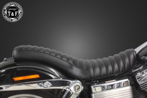 製品の仕様・シート素材:合皮製。・シートベース:FRP製。・シートインナー:発砲ウレタンフォームを使用。・シートカラー:ブラック。・取り付けステー:スチール製。ブラック仕上げ。製品の特徴・クッション性を失わず衝撃吸収性も非常に高い一体型ウレタンフォーム(スポンジ)を使用し、型崩れしにくく快適に乗る事が出来ます。・シートベースには軽量で頑丈なFRPを使用しております。・フォームと表皮の間には収縮するフィルムを包装し、防水面も考慮しております。■注意事項・シートインナー(発泡ウレタンフォーム)は防水用の収縮する透明フィルムで覆われています。この特殊なフィルムは押したり、引っ張ったりしても簡単に破れるようなことはありません。このフィルム加工をすることにより雨水がウレタンフォームまで浸水することはありません。しかしながら表面合皮の縫い目から雨水が浸水し、ウレタンフォームとの間には雨水が入る可能性はございます。ただし、ウレタンフォームまで浸水することはありませんので良く乾いた布なので表面の水をふき取って頂き、天日干しして頂ければすぐに乾燥いたします。※十分な防水対策は施されておりますが完全防水ではございませんのでご了承下さい。■適合不可モデル・ダイナ(〜2005年のモデル)。・ダイナワイドグライド(〜2005年のモデル)。・ダイナワイドグライド(2010年〜のモデル)。・ダイナファットボブ(FXDF)(2008年〜のモデル)。※これらのモデルは取付不可となりますのでご注意下さい。