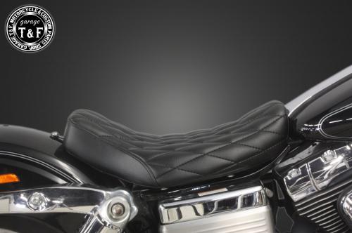 製品の仕様・シート素材:合皮製。・シートベース:FRP製。・シートインナー:発砲ウレタンフォームを使用。・シートカラー:ブラック。・取り付けステー:スチール製。ブラック仕上げ。製品の特徴・クッション性を失わず衝撃吸収性も非常に高い一体型ウレタンフォーム(スポンジ)を使用し、型崩れしにくく快適に乗る事が出来ます。・シートベースには軽量で頑丈なFRPを使用しております。・フォームと表皮の間には収縮するフィルムを包装し、防水面も考慮しております。■注意事項・シートインナー(発泡ウレタンフォーム)は防水用の収縮する透明フィルムで覆われています。この特殊なフィルムは押したり、引っ張ったりしても簡単に破れるようなことはありません。このフィルム加工をすることにより雨水がウレタンフォームまで浸水することはありません。しかしながら表面合皮の縫い目から雨水が浸水し、ウレタンフォームとの間には雨水が入る可能性はございます。ただし、ウレタンフォームまで浸水することはありませんので良く乾いた布なので表面の水をふき取って頂き、天日干しして頂ければすぐに乾燥いたします。※十分な防水対策は施されておりますが完全防水ではございませんのでご了承下さい。■適合不可モデル・ダイナ(〜2005年のモデル)。・ダイナワイドグライド(〜2005年のモデル)。・ダイナワイドグライド(2010年〜のモデル)。・ダイナファットボブ(FXDF)(2008年〜のモデル)。※これらのモデルは取付不可となりますのでご注意下さい。