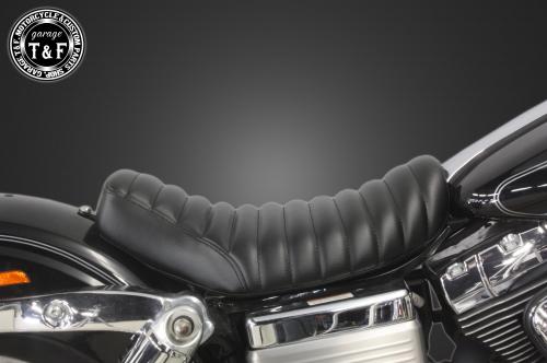 製品の仕様・シート素材:合皮製。・シートベース:FRP製。・シートインナー:発砲ウレタンフォームを使用。・シートカラー:ブラック。・取り付けステー:スチール製。ブラック仕上げ。製品の特徴・クッション性を失わず衝撃吸収性も非常に高い一体型ウレタンフォーム(スポンジ)を使用し、型崩れしにくく快適に乗る事が出来ます。・シートベースには軽量で頑丈なFRPを使用しております。・フォームと表皮の間には収縮するフィルムを包装し、防水面も考慮しております。■注意事項・シートインナー(発泡ウレタンフォーム)は防水用の収縮する透明フィルムで覆われています。この特殊なフィルムは押したり、引っ張ったりしても簡単に破れるようなことはありません。このフィルム加工をすることにより雨水がウレタンフォームまで浸水することはありません。しかしながら表面合皮の縫い目から雨水が浸水し、ウレタンフォームとの間には雨水が入る可能性はございます。ただし、ウレタンフォームまで浸水することはありませんので良く乾いた布なので表面の水をふき取って頂き、天日干しして頂ければすぐに乾燥いたします。※十分な防水対策は施されておりますが完全防水ではございませんのでご了承下さい。■適合不可モデル・ダイナ(〜2005年のモデル)。・ダイナワイドグライド(〜2005年のモデル)。・ダイナワイドグライド(2010年〜のモデル)。・ダイナファットボブ(FXDF)(2008年〜のモデル)。※これらのモデルは取付不可となりますのでご注意下さい。