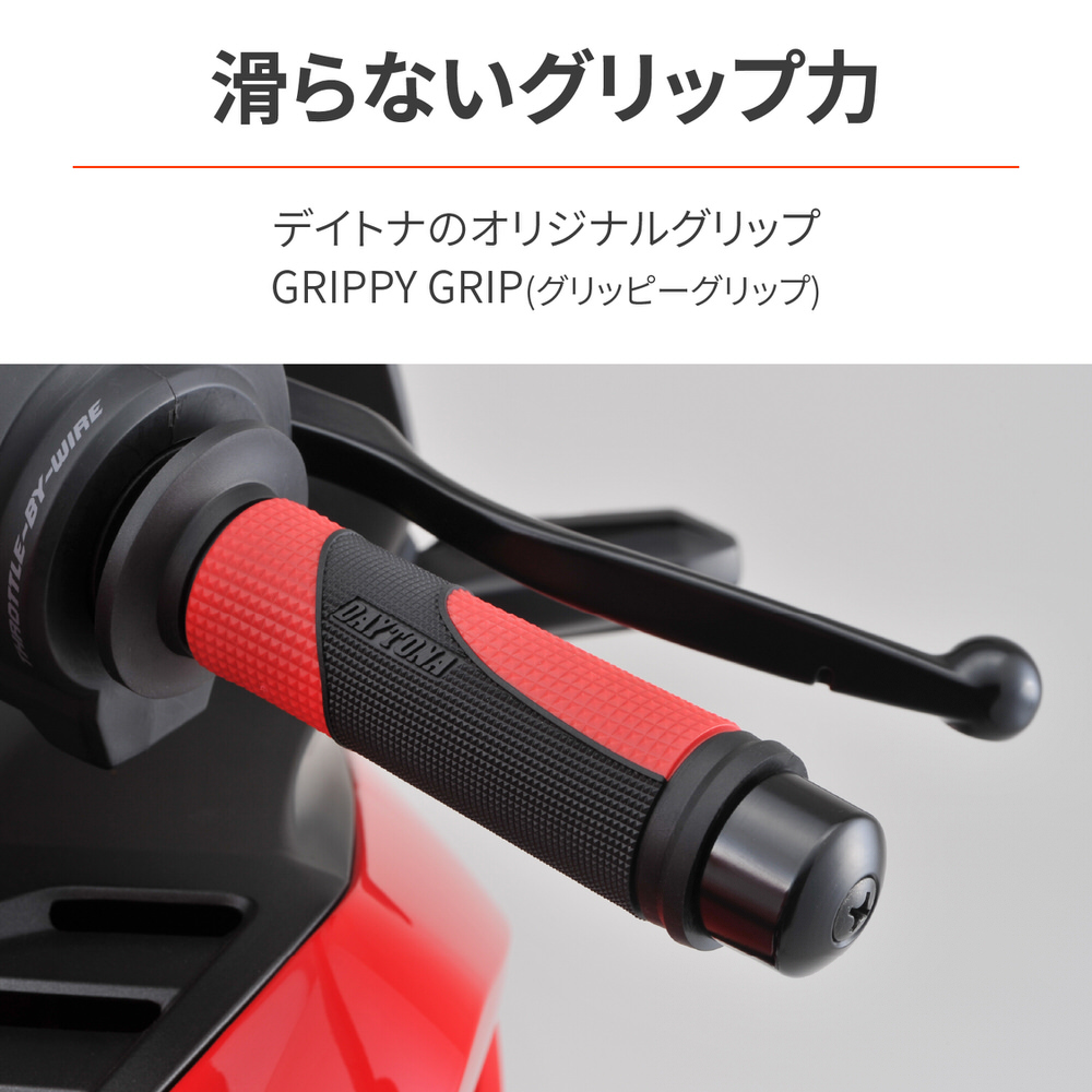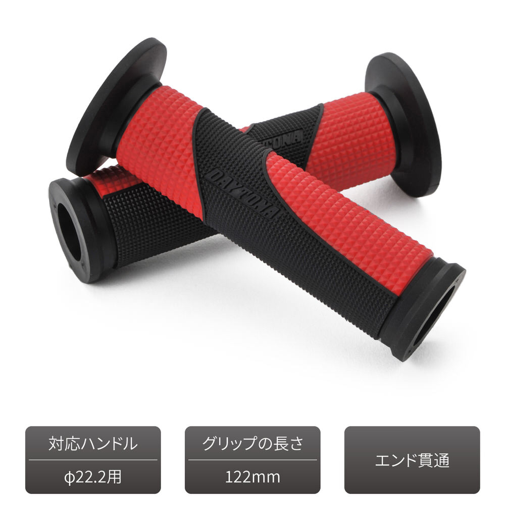 GG-D-TAPERD-BASE グリッピーグリップ ハンドル径φ22.2用 122mm テーパード形状 エンド貫通 レッド DAYTONA(デイトナ)