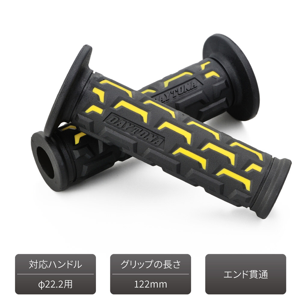 GG-D-GROUND グリッピーグリップ ハンドル径φ22.2用 122mm エンド貫通 イエロー DAYTONA(デイトナ)
