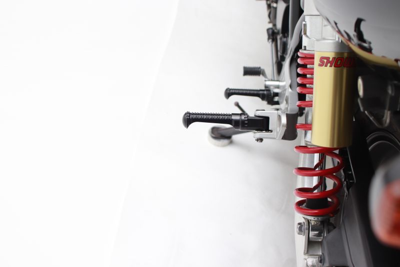 純正リプレイスのステップバー。ゲイルスピード「フットコントロールキット」と同じマシニング加工のエッジが効いた切削溝は、靴底が滑らずサーキットでも十分にライダーの走りをサポートします。純正ポジションから大きく変更しないため乗りやすく、また体重をしっかりと支えるのでコーナー侵入の倒しこみがスムーズで、旋回中の安定感を得られます。カラー:ブラック・材質:アルミ6061材・バー重量:29g・ステップ長:72mm(樹脂キャップ除く)・MFJレギュレーション準拠・6段階角度調整【適合参考車種】CB1300SF(2001〜2021年)CB1300SF(ABS)(2001〜2021年)CB1300SF SP(2019〜2021年)CB1300SB(2005〜2021年)CB1300SB(ABS)(2005〜2021年)CB1300SB SP(2019〜2021年)CB1100(2010〜2015年)CB1100(ABS)(2010〜2015年)X-11(2000年)CBR600RR(2003〜2004年)CBR600RR(ABS)(2003〜2004年)CB400SF(2000〜2020年)CB400SF(ABS)(2000〜2020年)CB400SB(2005〜2019年)CB400SB(ABS)(2005〜2019年)CB400FOUR(1997〜1999年)GB350(2021年)GB350S(2021年)CBR250RR(2017〜2020年)CBR250RR(ABS)(2017〜2020年)GROM(2013〜2020