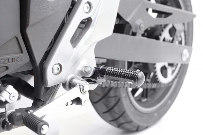 ゲイルスピード「フットコントロールキット」と同じマシニング加工のエッジが効いた切削溝は、靴底が滑らずサーキットでも十分にライダーの走りをサポートします。