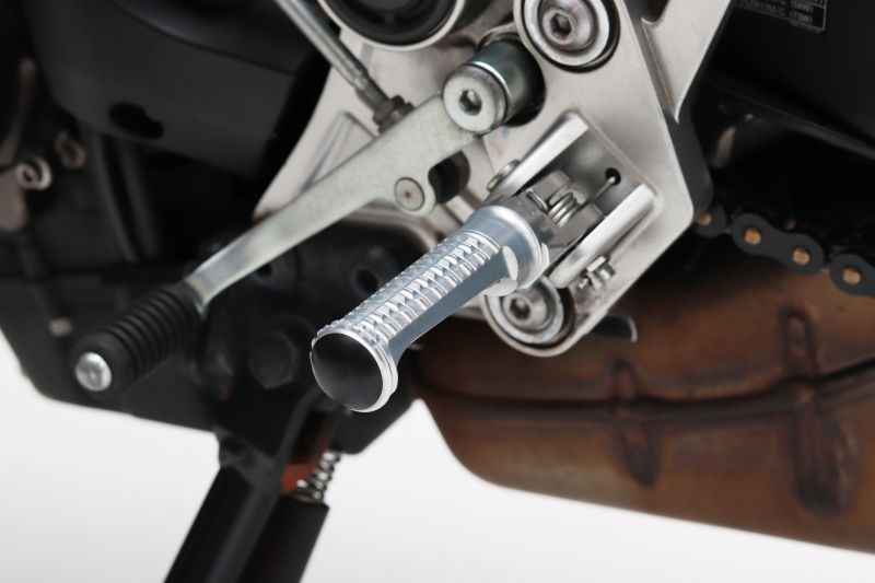 純正リプレイスのステップバー。ゲイルスピード「フットコントロールキット」と同じマシニング加工のエッジが効いた切削溝は、靴底が滑らずサーキットでも十分にライダーの走りをサポートします。純正ポジションから大きく変更しないため乗りやすく、また体重をしっかりと支えるのでコーナー侵入の倒しこみがスムーズで、旋回中の安定感を得られます。・カラー:シルバー・材質:アルミ6061材・バー重量:29g・ステップ長:72mm(樹脂キャップ除く)・MFJレギュレーション準拠・6段階角度調整【適合参考車種】ZX-10R(2011〜2021年)ZX-10R(ABS)(2011〜2021年)Ninja400(2018〜2021年)Ninja400(ABS)(2018〜2021年)Z400(2019〜2021年)Ninja ZX-25R(2021年)Ninja250 2018〜2021年)Ninja250(ABS) 2018〜2021年)Z250 ABS 2019〜2021年)