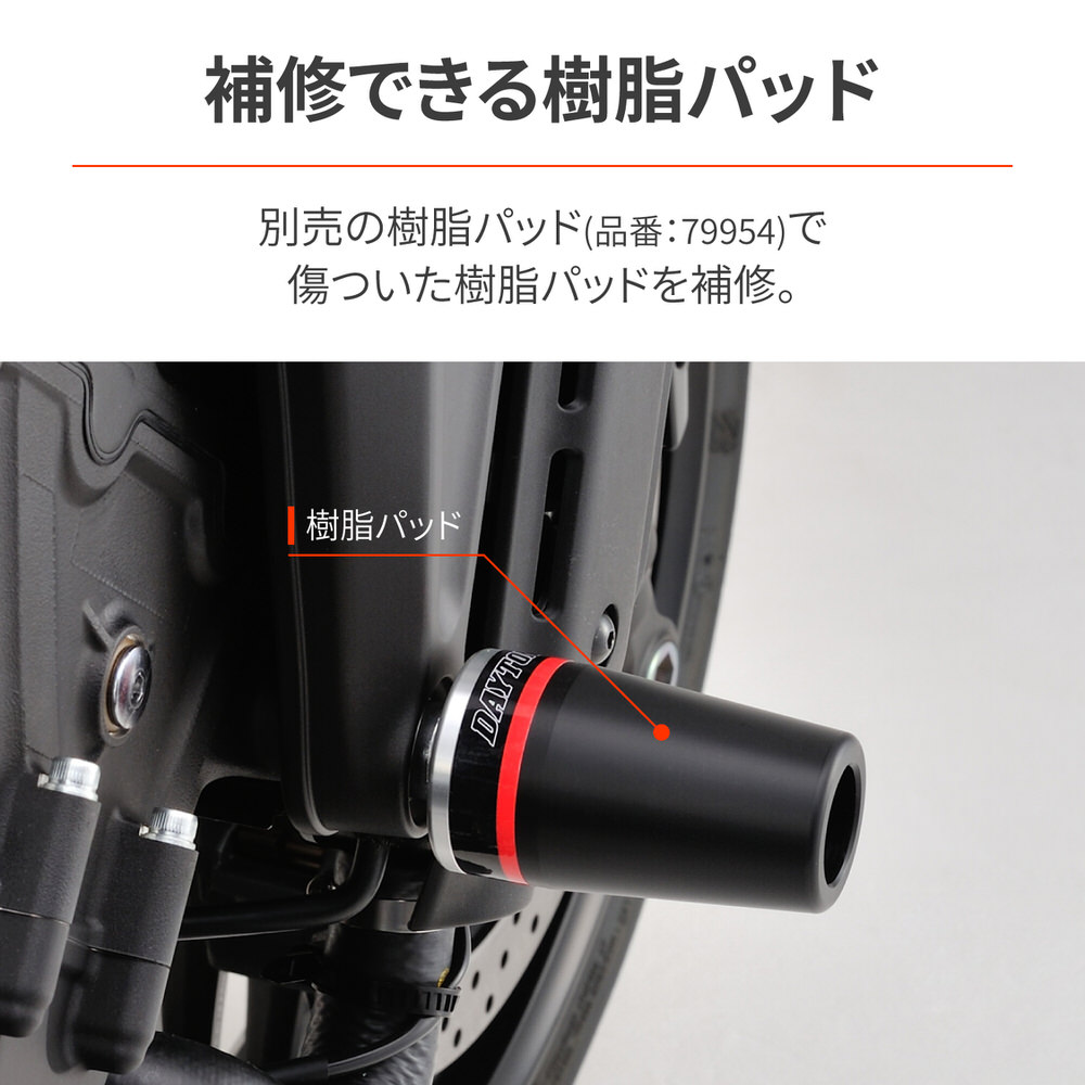 スポーティーなスタイルでエンジンをプロテクト。樹脂製パッドとアルミベースの一体構造により十分な強度を確保。転倒時の衝撃を受け流し、クランクケース割れなどの致命的なマシンダメージを最小限に軽減。取り付けが簡単なボルトオン設計。転倒時の衝撃を受け流し、クランクケース割れなどの致命的なダメージを軽減樹脂製パッドとアルミベースの一体構造により十分な強度を確保補修用としてパッド単体(品番:79954)でリペアも可能ボルトオン設計で簡単取付