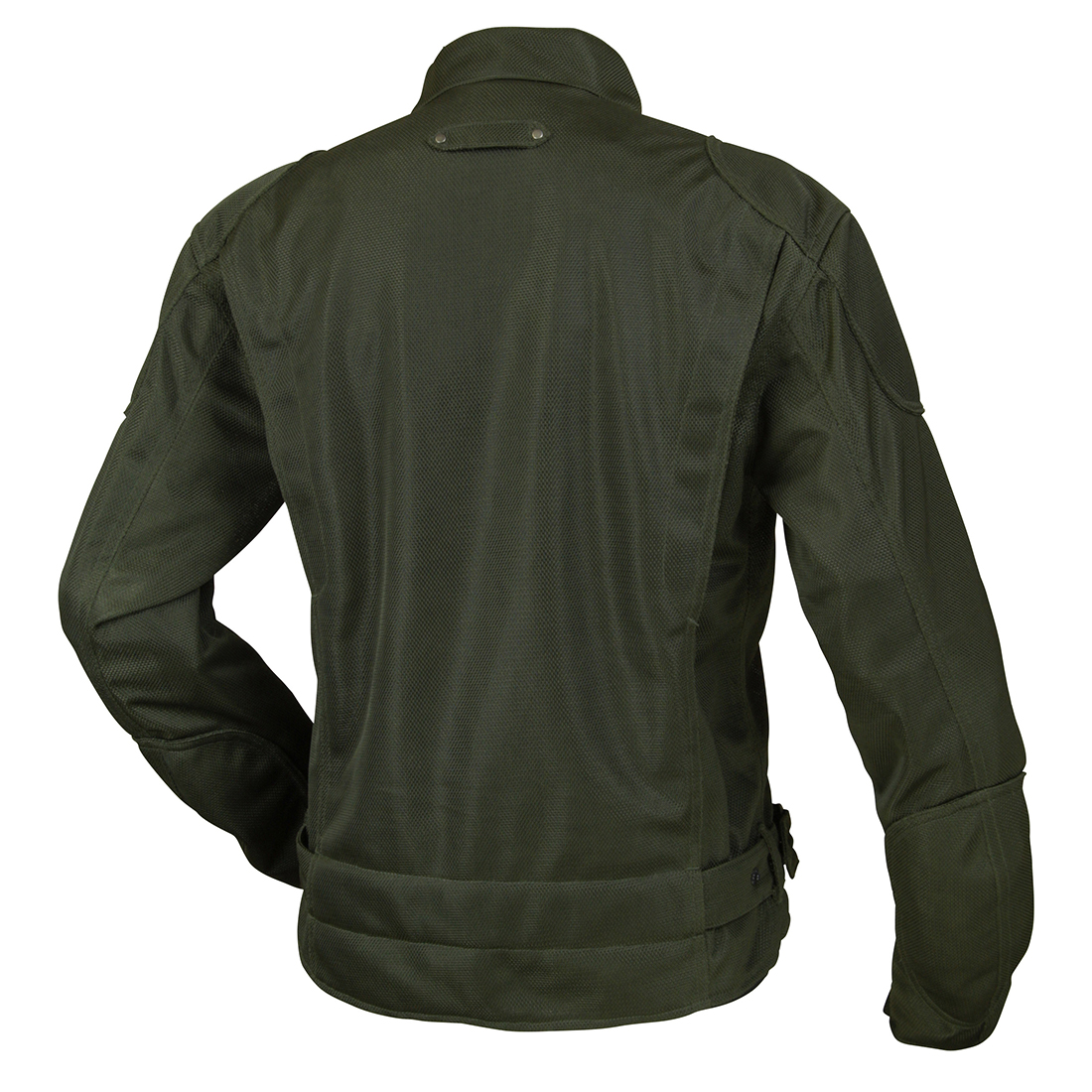 トラディショナルだけど新しいシックな装いの提案ビンテージ感たっぷりなデザインは時と場所、そしてバイクを選びません。メイン素材のスパックスメッシュはしなやかで強く、紫外線を通さずさわやかな風を通します。洗練されたスタイルがコーディネートの幅と行動範囲をグンと広げてくれます。MATERIAL: 表地/スパックスメッシュNEW 裏地/スーパーエアメッシュ 襟裏/クールマックスメッシュPROTECTOR: 肩・肘・脊椎パッド標準装備