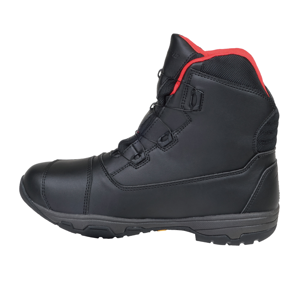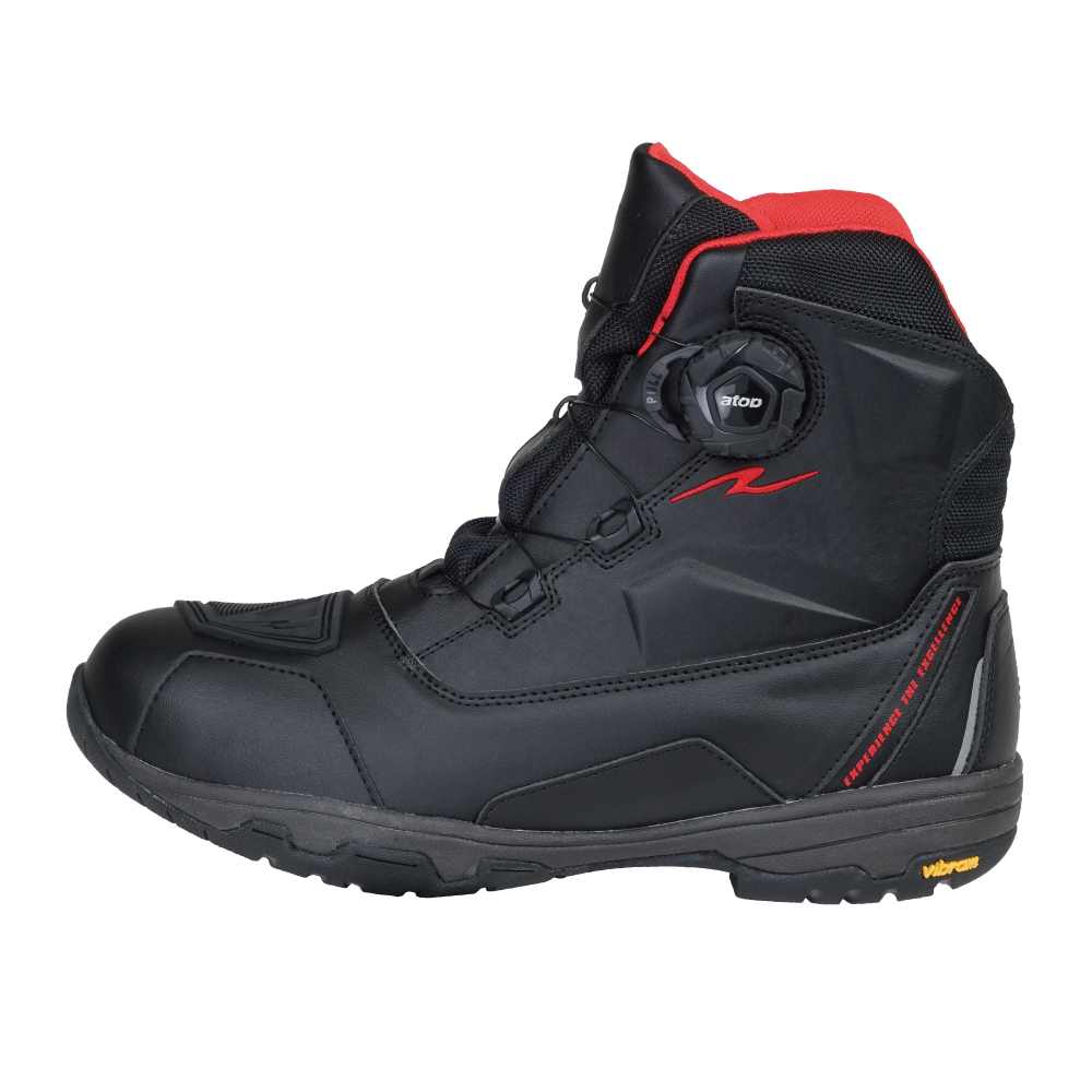 圧倒的にスピーディな着脱を可能にするダイヤルワイヤーシステム「a-top」、アウターソールのトップブランド「Vibram(R)ソール」のうちモーターサイクルに最適なものを採用した、ラフアンドロードが送る防水透湿ライディングシューズ。デザインされた幅広シフトパッドや被視認性を高めるリフレクター、整形くるぶしガードなどを装備したハイカットブーツでありながら、片足でわずか500g以下の超軽量化を実現しました。防水・透湿・軽量で、通勤通学などのシティユースからロングツーリングまで幅広く活躍できるライディングシューズです。機能紹介・防水透湿(耐水圧20000mm)・a-topダイヤルワイヤーシステム・Vibram(R)ソール・左足シフトガード・リフレクターWIDTH(足囲):2EMATERIAL: 本体/合成皮革、ゴム素材