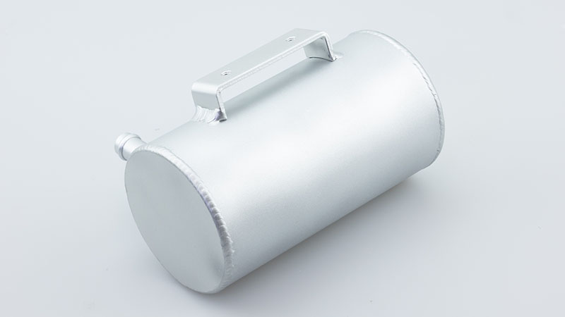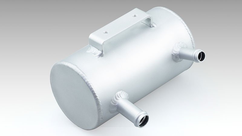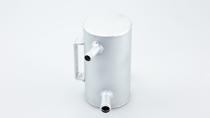 ブリーザーパイプ間につなぎオイルの飛散を防止するタンクです。レースではレギュレーションにて装着が義務付けられています。ホース類は付属しておりませんの別途ご用意ください。【材質】アルミ【色】シルバーアルマイト【形状】丸型【サイズ】506cc H75xL140xW75mm 取出し口12mm/15mm