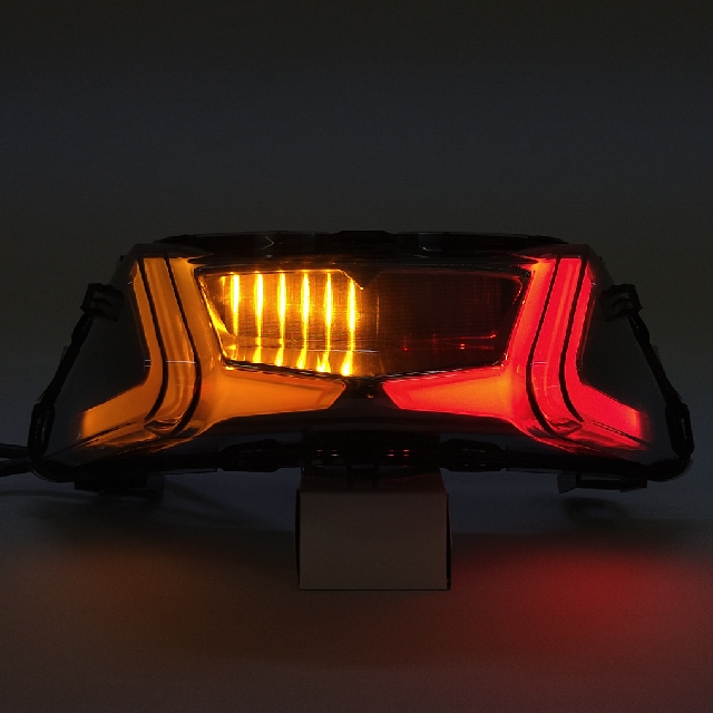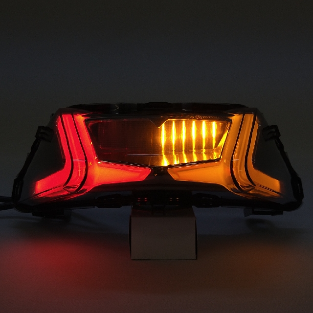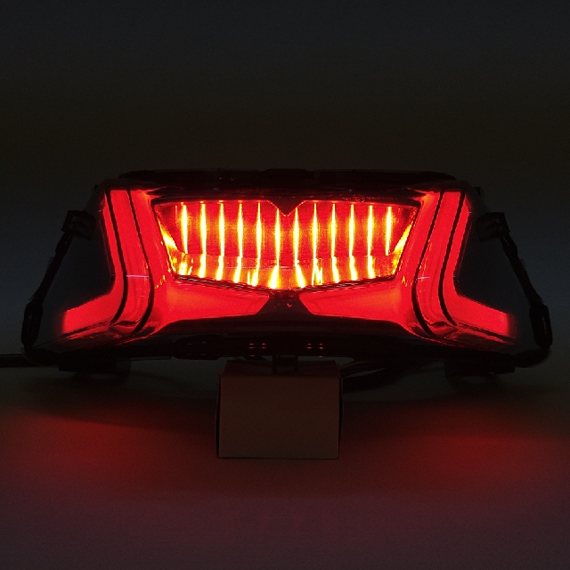 LEDテールライトにウインカー機能をビルトインしたテールライトです。ウインカー作動時はオレンジのLEDが赤に替わって点滅します。本製品はウインカー線を繋がなければ通常のテールライトとしても使用できます。カラー:ライトスモーク