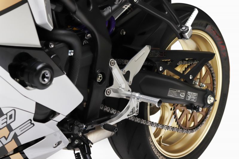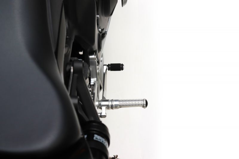 ストレスフリーなペダル操作へ。徹底して操作性を追求した「Elaborate フットコントロールキット」に250ccのためのLIGHTシリーズが登場。思想と技術はそのままに、よりお求めやすいモデルとなっています。純正ポジションから最小限の位置変更で、サーキットからストリートまで楽しめるパフォーマンスを発揮。ステップワークを妨げる要素を徹底して排除し、操作性を追求しました。メインフレームと一体化したような剛性感、滑らかな操作感、機能美を追求したシンプルな外観をお楽しみください。材質:アルミ7075、(一部6061)純正ブレーキスイッチ移設設計純正ABSブレーキホース対応ポジション1:BACK 15mm、UP 5mmポジション2:BACK 18mm、UP 16mm