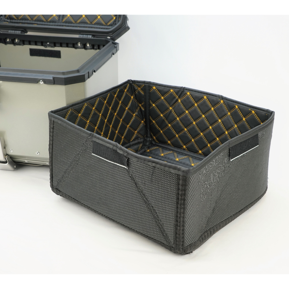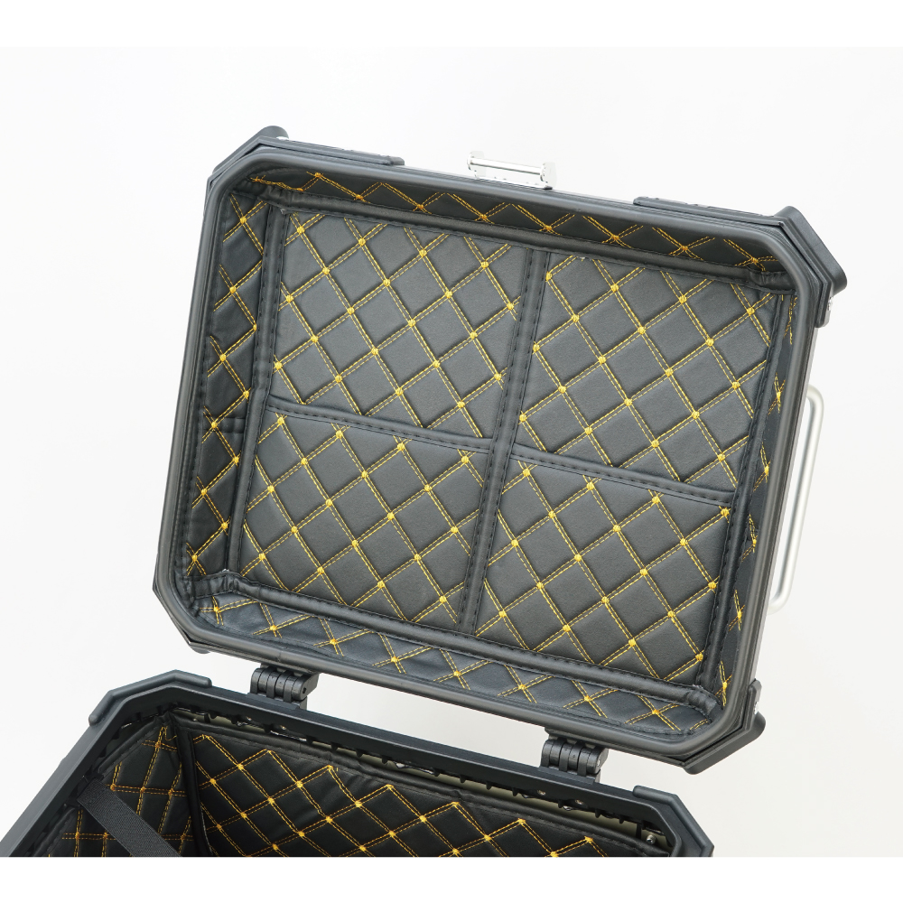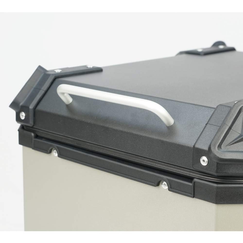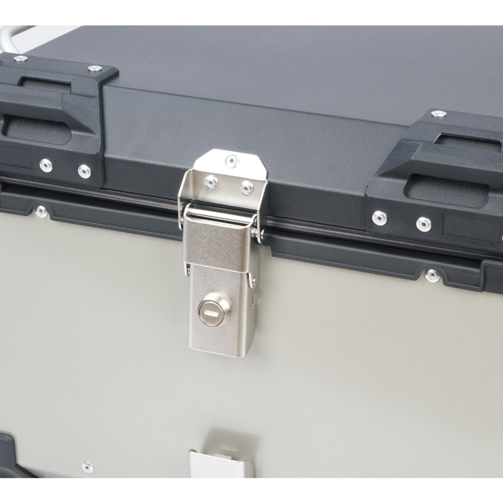軽量・強固なアルミトップケースにCT125ハンターカブ取り付けアタッチメントがセットになって登場。軽量・強固なアルミトップケース。通勤・デリバリー業・日常使いからキャンプ・ロングツーリングまで幅広く活躍するトップケースは、ハードユースに耐えうる性能を求められます。防水性を高めた開口部の構造、内面キルティングインナークッション・バックルベルトで内容物を保護。取り付け汎用性のあるベースプレートを車体に装着した後は本体が容易に着脱可能であることはもちろん、開口部と着脱部分はキーロック仕様で車体から離れる際も盗難の心配がなく安心です。SIZE:外寸 縦370×横420×高さ330mm容量:43L