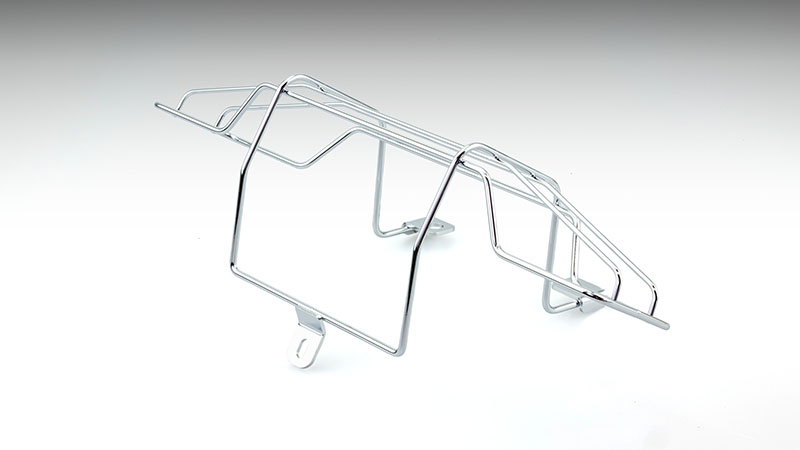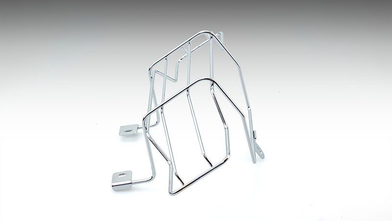 テールランプを飛び石等から守るような雰囲気を演出するテールランプガードです。キャンプツーリングや未舗装路走行する際に気分を盛り上げてくれるドレスアップパーツです。【材質】スチール【色】クロームメッキ