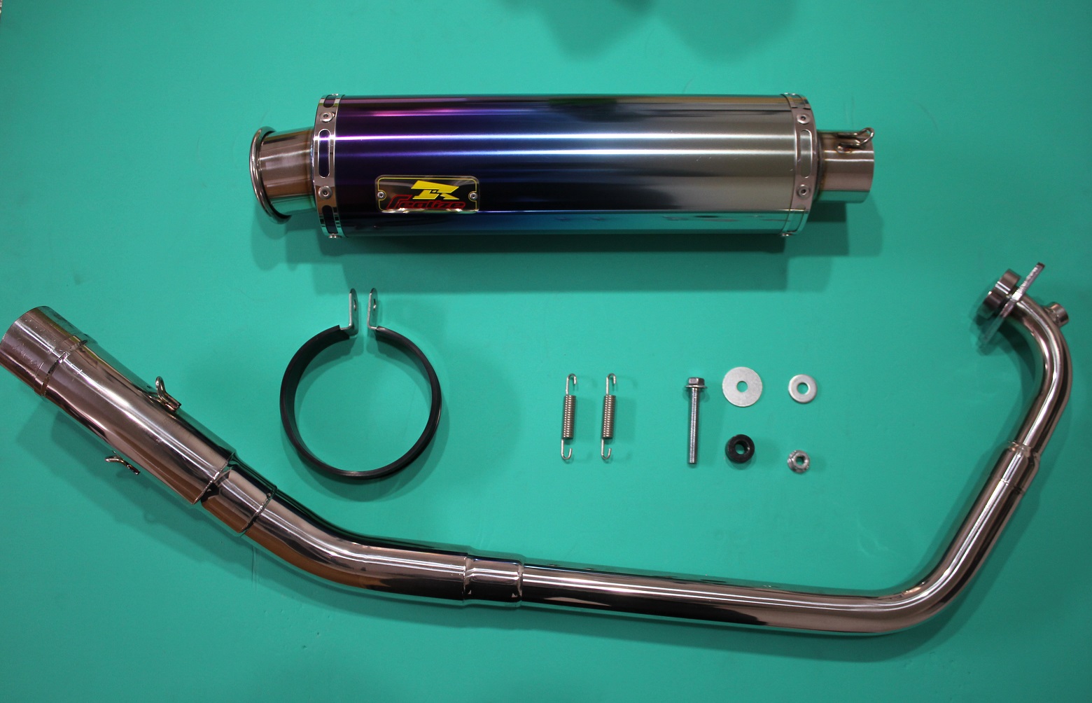 【サイレンサー詳細】全長:440mm筒長さ:340mmサイレンサー出口径:60.5φ 2PRサイレンサー差込口:内径50.8φバッフル:外径57.5φサイレンサー径:100φ材質:サイレンサー部分→チタン製エキパイ部分→ステンレス製【付属品】サイレンサー 1個エキパイ 1個サイレンサーバンド 1個バッフル(標準装備) 1個M8×55 ボルト 1個M8×10 カラー 1個ワッシャー 2個(大1個、小1個)ナット M8 1個スプリング S 2個【注意事項】当マフラーを装着する際はカウルを外して取付を行ってください。カウル(下側)部分とエキパイが干渉しないように取付けてください。(0.5cm程空いていれば大丈夫です)オイル交換の際もマフラーを外さずに対応できる仕様となっております。リアライズレーシング社の商品は全て保安基準に適した仕様にはなっておりますが、政府認証試験は受けておりません。