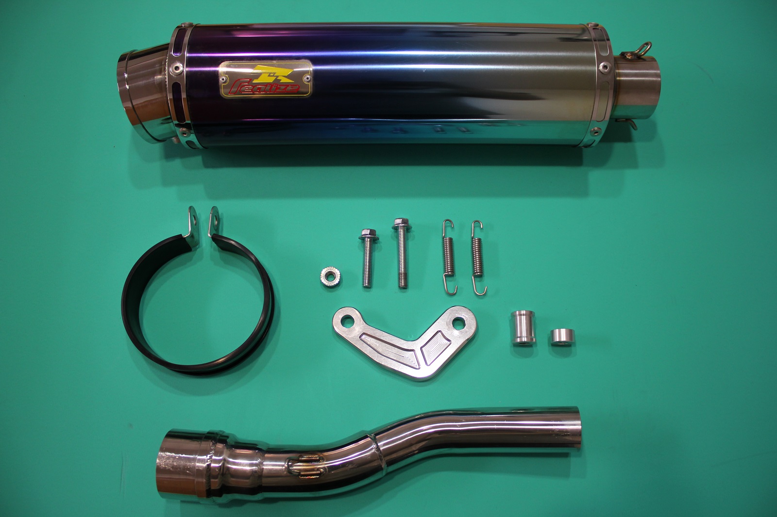 2018年モデル/2020年 FINAL EDITIONモデル【サイレンサー詳細】全長:440mm筒長さ:340mmサイレンサー出口径:76.3φ スラッシュエンドサイレンサー差込口:内径50.8φバッフル:外径73φ サイレンサー径:100φ材質:チタン製 (サイレンサーシェル以外はステンレス製) ※サイレンサーシェル部分のみチタン製で、他部分はステンレス製です。【付属品】サイレンサー 1個エキパイ 1個サイレンサーバンド 1個専用アルミステー 1個バッフル(標準装備) 1個M8×50 ボルト 1個M8×40 ボルト 1個M8×25 アルミカラー 1個M8×10 アルミカラー 1個ナット M8 1個スプリング S 2個【注意事項】サイレンサーのポジショニングに関しまして、テールランプおよびステーに干渉しないようにエキパイ部分を回転させながら位置を固定してください。ステー取り付けに関しまして、車体側より長い方のカラー・ステー・短い方のカラー・サイレンサーバンドの順番になるように取り付けをしてください。オイル交換の際もマフラーを外さずに対応できる仕様となっております。リアライズレーシング社の商品は全て保安基準に適した仕様にはなっておりますが、政府認証試験は受けておりません。