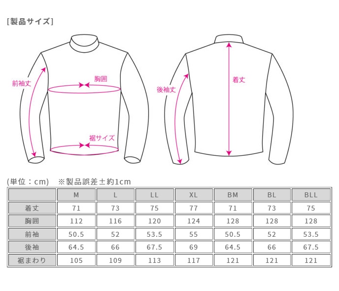 急な天候や気温の変化にも対応し、ライダーを強力にサポートするライディングジャケット。防水・防風・透湿性等に優れた素材を採用、すべてのテクノロジーを投入した一着です。様々な状況下で安定したコンディションをキープし、ショートトリップからロングツーリング、そしてハイスピード・ライディングと多様なステージまで幅広く対応。また、防寒対策として着脱式インナージャケットを装備。酷暑の夏に対応できるベンチレーション機能は、長年培ったノウハウを惜しみなく投入しました、胸部、フロントVベント、アーム部からの外気のエアインテークを大型バックベンチレーションパネルより効率的に排気し、驚くほど効果的に衣服内環境を最適な環境に保ちます。【酷暑でも快適、高機能ベンチレーション】大きく開く胸部ベンチレーション、フロントVベント、・腕部ベンチレーション、大型バックベンチレーションパネルより効率的に排気。衣服内環境を快適に保ちます。【優れたプロテクション性】胸・肩・肘・脊椎すべてをガードするフルプロテクションパッドを装備しライダーをガード。肩・肘は新型のベンチレーションCEパッドを採用。【上質な素材】軽く、肌触りの良い高品質なメイン素材で、既存品にない軽やかな着用感で長時間の着用も苦になりません。【防水・透湿機能】実地テストを重ねた確かな防水機能と湿気を放出する透湿機能を備え、雨風の侵入をシャットアウトします。【機能的なポケット】使用シーンを考えて用意された多くのポケットは、ツーリングシーンでの使い勝手を考慮して設計されています。【豊富なサイズ設定】大きな方までカバーする豊富に揃えたサイズ設定であらゆるニーズに応えます。【オールシーズン対応】防寒インナー標準装備。外して使うのはもちろんオールシーズン対応ファスナーで寒いときにはオプションインナーを合体し、防寒性をアップすることも可能。表地/ヘリンボーンデュアルテックス加工(ポリエステル、ナイロン、TPUボンディング)裏地/メッシュ(ポリエステル)、インナー/タフタ(ナイロン)インナー中綿/ウォームマックス(ポリエステル)インナー襟裏/起毛トリコット(ポリエステル)PROTECTOR:胸・肩・肘・脊椎パッド 標準装備(肩・肘はCE規格)防寒インナージャケット標準装備