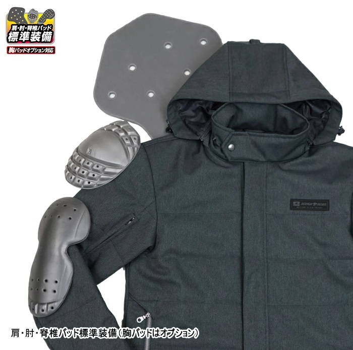 ※商品詳細画像には同モデル別カラーの画像がございます。予めご了承くださいませ。ダウンに匹敵する高機能素材、プリマロフト(R)の中綿入りパーカー。中綿には超軽量・イージーメンテナンス性を兼ね備えた最高クラスの保温力を誇る「PrimaLoft Gold Insulation with Cross Core 」(プリマロフト(R)・ゴールド・インサレーション・ウィズ・クロス・コア)を採用し最高の防寒性を誇ります。プリマロフト(R)は、羽毛に代わる画企的な超微細マイクロファイバー素材で、羽毛のように軽くて暖かい保温性と柔軟性を発揮するだけではなく、羽毛にはない撥水性を備えており水にも強い機能性(メンテナンス性・断熱性・防寒テクノロジー)と、過酷な環境でも使える高い実用性を備えた先進の人工中綿です。表地の質感の高いヘリンボーン素材で、やわらかく防風仕様で外気を遮断します。暖かすぎた時のためのベンチレーションも備え、衣服内温度が調整可能で快適なライディングに対応。ライディングウエアとしてはもちろん、お洒落なアーバンデザインで街着としても気軽に羽織って出かけられるフットワークの軽さで、行動範囲が広がります。MATERIAL:表地/ヘリンボーンデュアルテックス加工(ポリエステル、ナイロン、TPUボンディング)裏地/ボア(ポリエステル)、タフタ(ナイロン)中綿/プリマロフト(R)(ポリエステル)PROTECTOR: 肩・肘・脊椎パッドOPTION:胸パッド