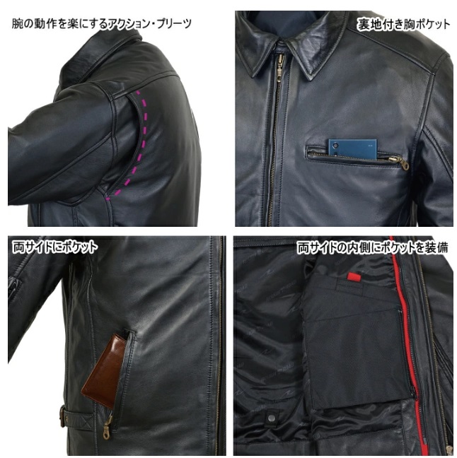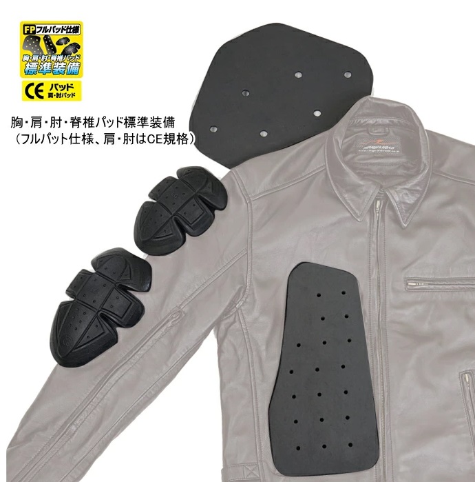 シープスキンはきめが細かく保湿性の高いしなやかな風合いで、ナイロンジャケットのような着易さに、革の強靭さを備えた優れた素材です。牛革の着づらさとは違い気軽に羽織れデイリーユースで大活躍間違いなし。アクシデントに備え、プロテクターは胸、肩、肘、脊椎パッドを装備したライディングジャケットです。夏季には開閉量調整が可能なラフ&ロード独自のフロントVベント、アームベンチレーションと背面ベンチレーションを装備、冬季にはエリを立てて使用が可能な構造で、時期に合わせた着用時の温度管理が可能です。オールシーズンシステムでインナージャケットを追加装備可能。多様なオプションインナーをライニングすることで気候に合わせフレキシブルに対応することが可能な本格的ライディングレザージャケットです。MATERIAL:表地/シープレザーPROTECTOR:胸・肩・肘・脊椎パッド標準装備 (フルパット仕様、肩・肘はCE規格)