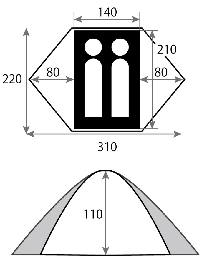 310×220×110cm(本体サイズ140×210×110cm、前室各80cm)