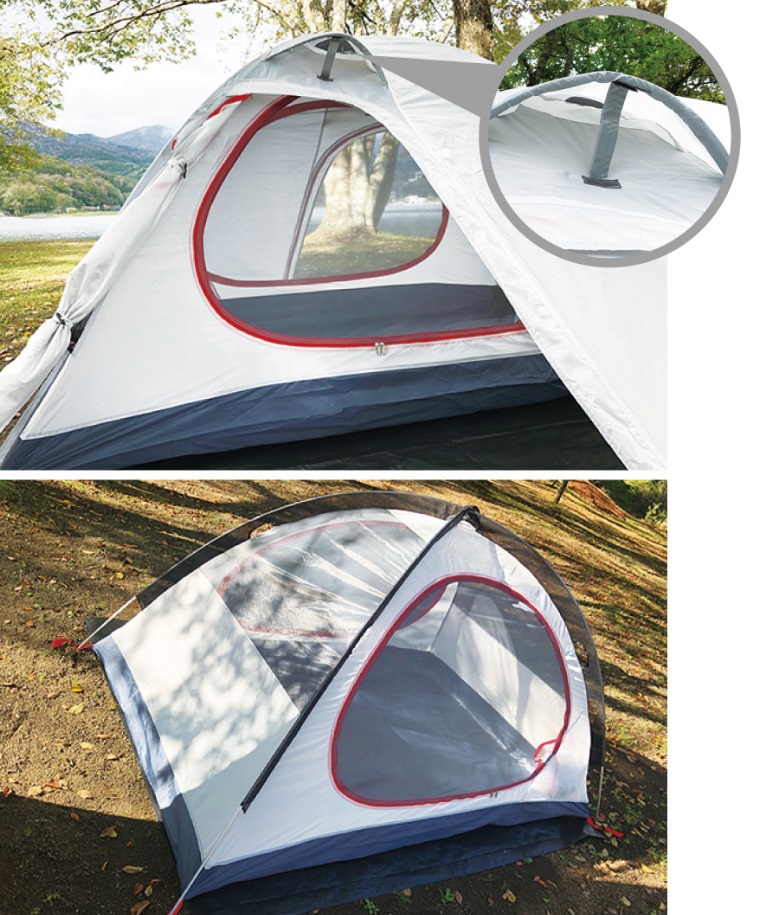 キャンプツーリング用テントで一番大切なのは収納サイズがコンパクトであること。ヘルメットやブーツ、ウェアなど荷物の多いライダーにとって適度に広く快適な居住スペースがあることに加え、説明書を見なくても感覚的に設営できるくらいすべてが簡単であることも大切。また雨の多い日本を旅するキャンパーにはフライと本体底部の防水性やベンチレーションが充実していることも外せません。これらを踏まえた上で、使用する生地やポールの材質にもこだわり、全てをちょうどいいバランスにまとめ上げたのがこの「ラフツーリングテント」。収納袋の長辺50cm以下・総重量3kg以下を実現し、ベテランキャンツーライダーも納得のスペックを持つドーム型ダブルウォールテントは旅のベース基地としてあなたのキャンプツーリングを力強くサポートします。収納SIZE:50x14x13cm重量:2.9kg(幕体2.2kg、ポール他0.7kg)素材:フライシート/ポリエステル70D ダイヤモンドリップストップ(耐水圧4000mm) 本体上部/ポリエステル ブレッサブルリップストップ 本体底部/ポリエステル210D(耐水圧4000mm) ポール/φ8.5mm アルミ合金付属品・ポール×2本・アルミペグ×14本・ガイロープ×4本・収納袋グランドシートは内容物に含まれておりません。