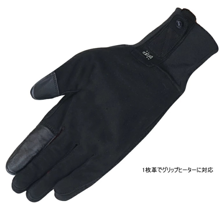 タッチパネル&グリップヒーター対応3レイヤーのウインドガードで防風&保温ハンドルカバーとの併用に最適内装をフリースボンディングを施したウインドガードにすることで防風と保温を一人二役でこなします。指先タッチパネルはもちろん、てのひらを一枚革仕上げにしグリップヒーターの熱伝導を妨げないグリップヒーター対応。3レイヤー(三層)構造をうまくグローブに生かした、通勤通学、バイク以外のシーンでもおすすめのデイリーグローブです。ハンドルカバーとの相性も抜群です。※サイズ感について ー 当製品は手首からの冷気の侵入を防ぐようフィット感を追求したため、手首部分がタイトな作りになっています。MATERIAL: 甲側/ウインドガードフリース 掌側/牛革、スマートタッチレザーFUNCTION: 両手タッチパネル対応、グリップヒーター対応