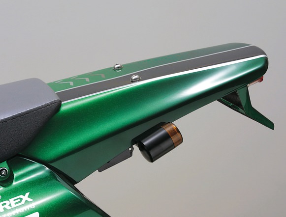 X系カスタム向けのリアフェンダー。シートとのラインを崩さずに、スタイリッシュなアップ形状にカスタマイズできます。純正リアウインカー併用可能。ルーカステールランプ、リフレクターキット付属。純正ツールバック、デイトナ社マルチウイングキャリア/グラブバーキャリアは取付不可。KLX装着写真の商品は撮影用にペイントしてあります。また、車体のフレームエンド部をカットしてありますが、商品自体は無加工でボルトオン装着できます。250SB('02)装着写真がフレームカットしていない状態ですが、純正がダウンリアフェンダーのモデルに装着しても、フレームエンド部があまり目立たないよう設計されております。純正がアップリアフェンダーのD-TRACKER(04〜'07)、250SB('04〜'05)に装着すればさらにすっきり取付可能。