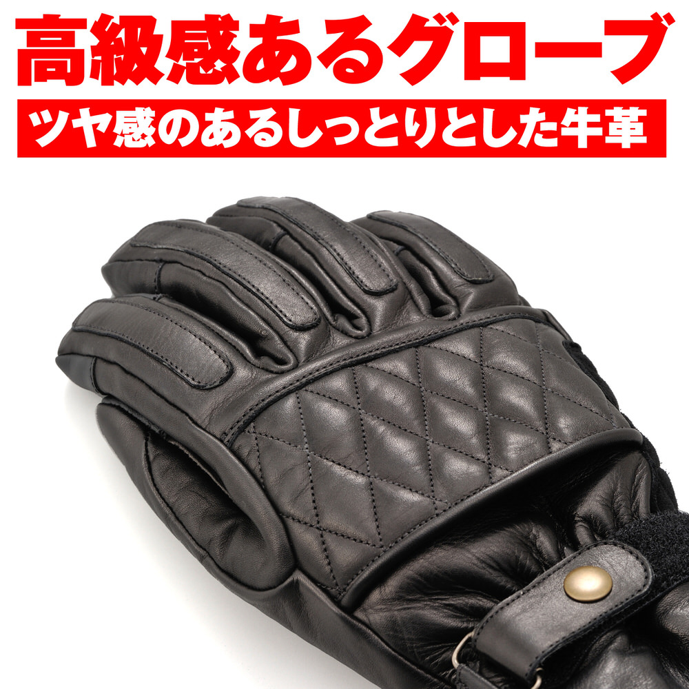 ツヤ感のあるしっとりとした牛革を全面に使用。レザーと防風防水透湿フィルムによる防風性に、裏地ボアを組み合わせることで高い防寒性を発揮。指先のパッチとナックルダイヤモンドステッチにより高級感のあるクラシカルな雰囲気グローブです。シーズン:秋冬牛革を全面に採用し、ダイヤモンドステッチ加工を施したクラシカルグローブ防風防水透湿フィルム+裏地にボアで高い防寒性を発揮タッチパネル対応※タッチパネル対応はグローブへの密着度や個人差により感度にばらつきがあります。※経年劣化や使用状況により防水フィルムが破損することがあります。