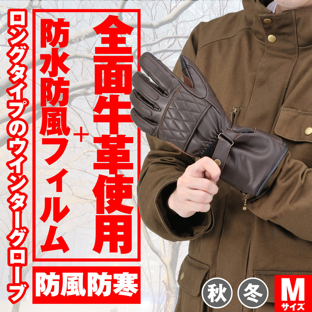 HBG-076 カウレザーロングウインターグローブ ブラウン Mサイズ DAYTONA(デイトナ)