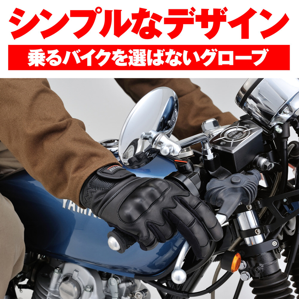 ハードナックルプロテクターと多面に使用した本革(ヤギ革)により安全性を確保。レザーと防風防水透湿フィルムによる防風性に、裏地ボアを組み合わせることで高い防寒性を発揮。指先の形状やパターンを見直し、ストレッチ素材と組み合わせることで握りやすさを向上。乗るバイクを選ばないシンプルなデザイン。シーズン:秋冬ヤギ革を全面に採用した、乗るバイクを選ばないシンプルなグローブ防風防水透湿フィルム+裏地にボアで高い防寒性を発揮タッチパネル対応※タッチパネル対応はグローブへの密着度や個人差により感度にばらつきがあります。※経年劣化や使用状況により防水フィルムが破損することがあります。