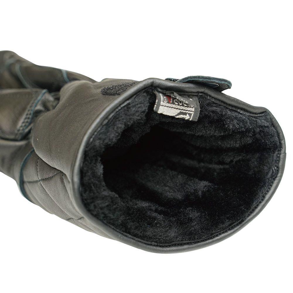 レザーのカシミアといわれるディアスキンを採用したトラディショナルスタイルのウインターレザーグローブそのフィット感は別次元しなやかで柔らかくなめらかな肌触りが特徴の鹿革(ディアスキン)を採用。その質感からは想像できない、牛革の約3倍とも言われる強度を誇ります。またその細胞の中には多くの脂が含まれているため革の大敵「水」にも強いのが特徴です。そんなグローブ素材として最適な特性を持つレザーに手首内側にたっぷり使われたフェイクボアで寒気を遮断、手首から先には起毛トリコットを使用しディアスキンの特性を最大に活かした抜群の操作感を実現しました。まさにカラダの一部と化したかのような使い心地も相まってスマホタッチも別次元の使いやすさ。既存のウインターグローブにない操作感、フィット感は一度はめたら元に戻れなくなる魅力を秘めています。MATERIAL:甲側/ディアスキン 掌側/ディアスキン、スマートタッチレザー インナー/ハイポーラグローブインサート 裏地/起毛トリコット、フェイクボアFUNCTION:両手タッチパネル対応