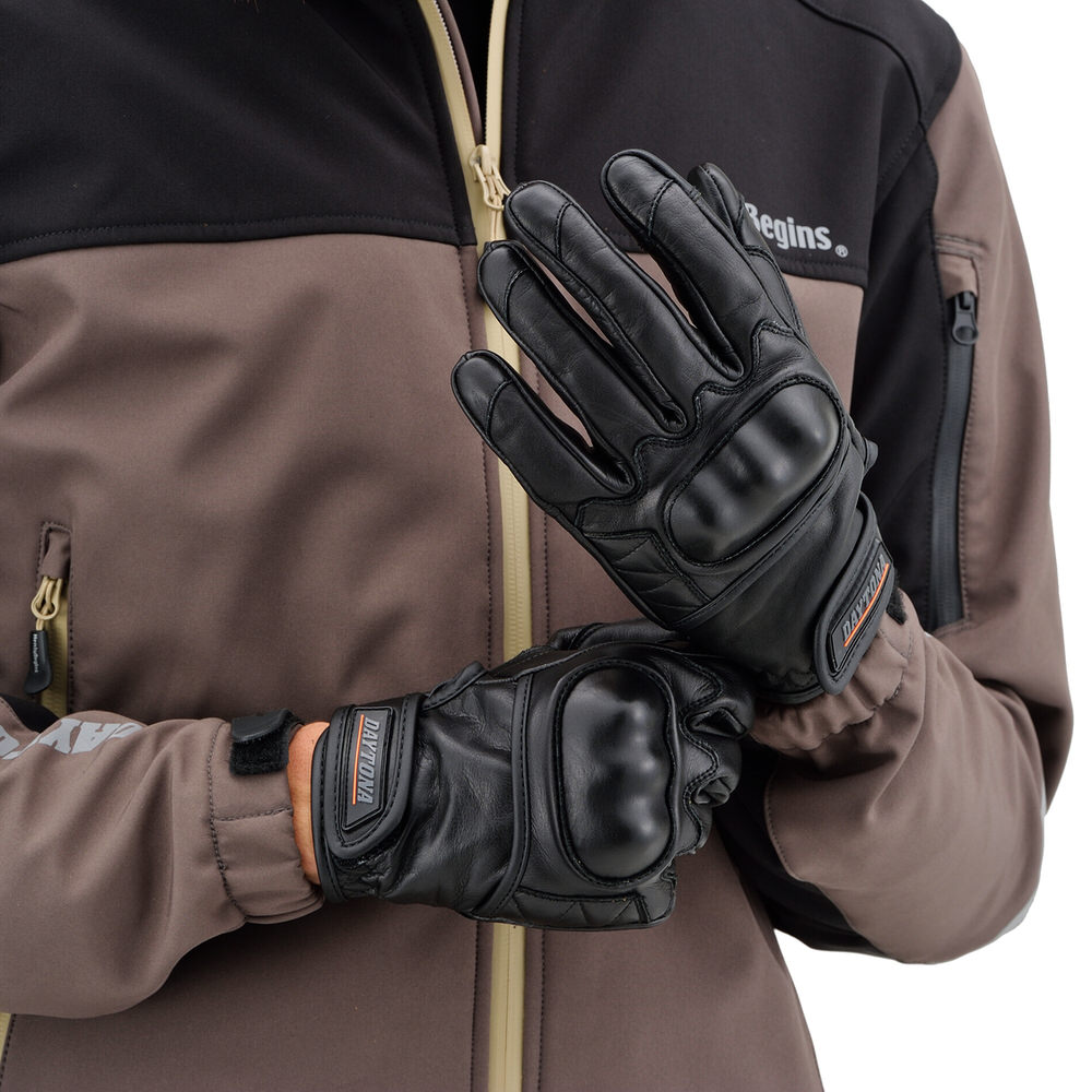 しっとり柔らかな牛革をフィット感の良い立体裁断で仕立てたオールシーズンライディンググローブ。人差し指先のタッチパネル対応部は側面まで回り込んでいるので、ストレスなくスマートフォンを操作できます。ハードナックルプロテクターは手を握ったときにも突っ張りが少ないフローティング構造を採用しています。素材:牛革 / プロテクター:PVCオールシーズンタッチパネル対応※タッチパネルの感度はグローブとの密着度や個人差により感度にバラつきがあります。