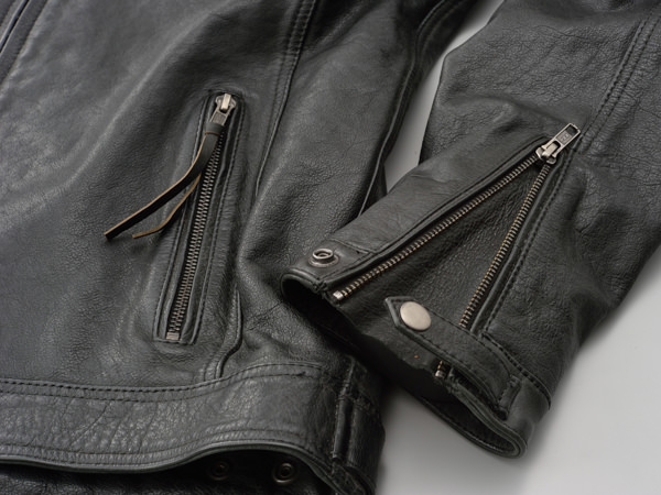 ベジタブルタンニン牛革(COW)にWAX加工を施した、オールドルックのカフェスタイルシングルライダース。ひじとひざのステッチがカフェレーサーらしさを演出。中綿無し。プロテクターは別売のSAS-TECが使用可能です。素材:表 牛革100%/裏地 ポリエステル100%※はっ水および耐水性はありません。※天然素材のためシボ目の違いや色ムラ、厚みの差などのバラつきは避けられません。また、傷についてもゼロではありません。あらかじめご了承ください。