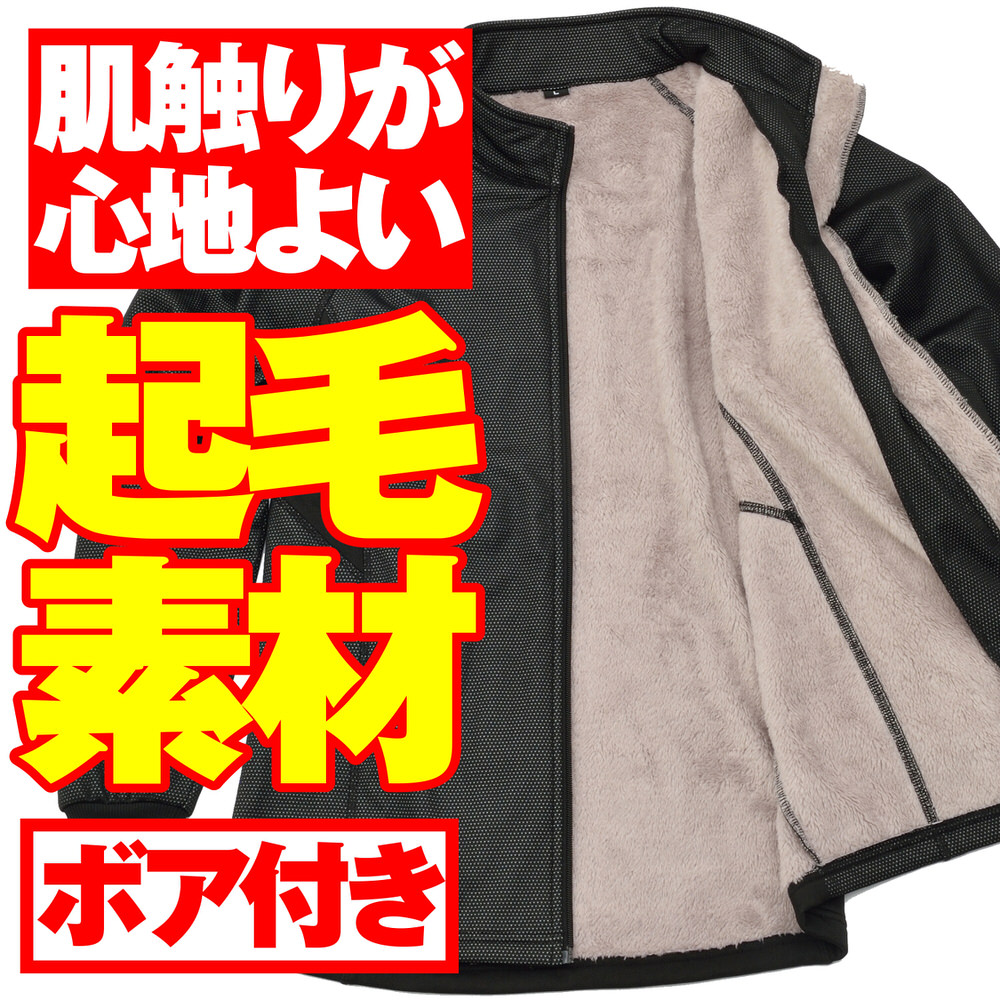 ボアフリース起毛生地で肌触りがよく、走行中の冷たい風を防風生地がガッチリガード。