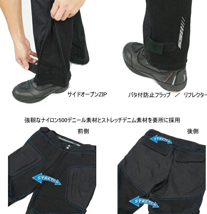 強化プラスチック製のニ―シンガードと追従性に優れ運動性を損なわないシリコンウエストパッドを備えたスポーツライディングに最適なプロテクションパンツ。耐摩耗性と耐久性に優れたナイロン500デニール素材とストレッチデニム素材により、ストレスのないソフトな履き心地を実現。また、腿とふくらはぎにはアジャストフラップを装備し、想定外のクラッシュでもプロテクションパッドのずれを抑え身体へのダメージを最小限に食い止める安全設計。ウエストはルーズフィット仕様により幅広いウエストサイズに対応し、夏着と冬着のウエストの違いや体型の変化にも対応し、スマートなシルエットで長年にわたり愛用できます。腿前部にはベンチレーションを装備し、スポーツライディング時も強制空冷し酷暑の夏でも涼しく快適です。裾後方には後方視認性をアップするリフレクターを装備し安全性にもぬかりはありません。走りを重視するライダーのための機能を備えたハードプロテクションライディングパンツです。シルエット: ストレートフィットMATERIAL:表地/コットン、ナイロン、牛革、ポリウレタン裏地/ポリエステルPROTECTOR: シリコンウエストパッド、プラスチックニーシンガード標準装備(着脱可能)