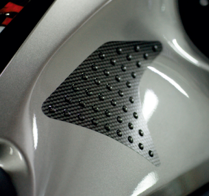 カーボン柄にドット凸加工を加え高いグリップ力を発揮、高品位極薄シートタイプでナチュラルな仕上がりです。プロテクションをしながらニーグリップをサポートするドット凸加工を施したイタリア生まれのタンクサイドグリッピングパッド。タンクサイドに貼り付けるだけでニーグリップを補助、タンクの傷つきを防止します。左右1セット。