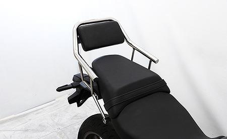 安心して安全にタンデム走行ができる機能面を重視した商品です。急発進時、横揺れ時、ブレーキング時の転落を防止し、子供から大人までしっかりとタンデムを快適にサポートしてくれます。タンデム走行テストを繰り返し開発した、車種専用特別設計です。バフ掛けを施していますので、高級感タップリに仕上がっています。バーの直径は25mmと極太で、パッセンジャーが握りやすく力を入れやすいので、安全性も高くなっております。他社メーカーにはないバックレストを使用していますのでパッセンジャーを快適かつ安全に走行できます。表面素材にはノーマルシートと似たシート生地を使用していますので、取って付けた感じは無くとても自然にマッチします。オリジナルバックレストは型から興して製作していますので、価格を抑えることに成功し見た目も良く耐久性に優れたしっかりとした作りになっています。
