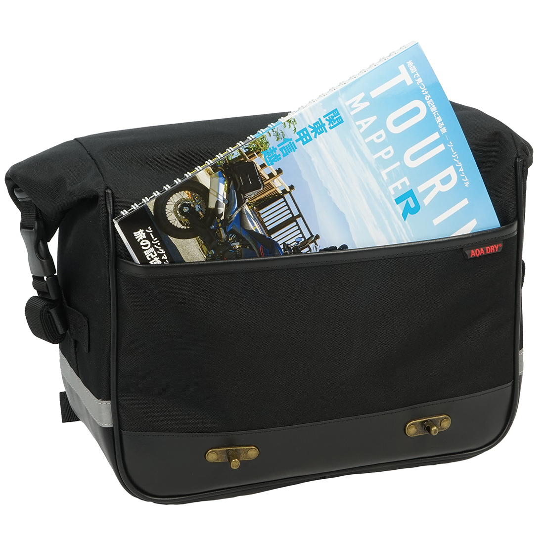 雨の日も安心なインナー防水シングルサドルバッグ「大きすぎず、小さすぎず、丁度いい」 ベストサイズの9.5Lインナーライナー式の防水仕様で急な雨にも対応できる安心のサドルバッグです。入り口はジッパーを閉めロールダウンして閉じる万全の防水仕様。ウインカー位置やタンデムステップの干渉を受けにくいサイズ設定でバイクのサイドに収まりやすい大きさに仕上げました。「大きいと取り付け場所を選ぶ。小さいと荷物が入らない」その間をバランスよくとりもった丁度良いサイズ。背部には貫通スリットを設けサドルバッグサポート等に差し込めば簡単にバタつきを防止できます。前後サイドにはリフレクタを配置し夜間の視認性も確保した安全設計です。カブやアメリカン、シングル向けにおすすめのサイズとデザインのシングルサドルバッグです。※フロントのスリットポケットは非防水です。