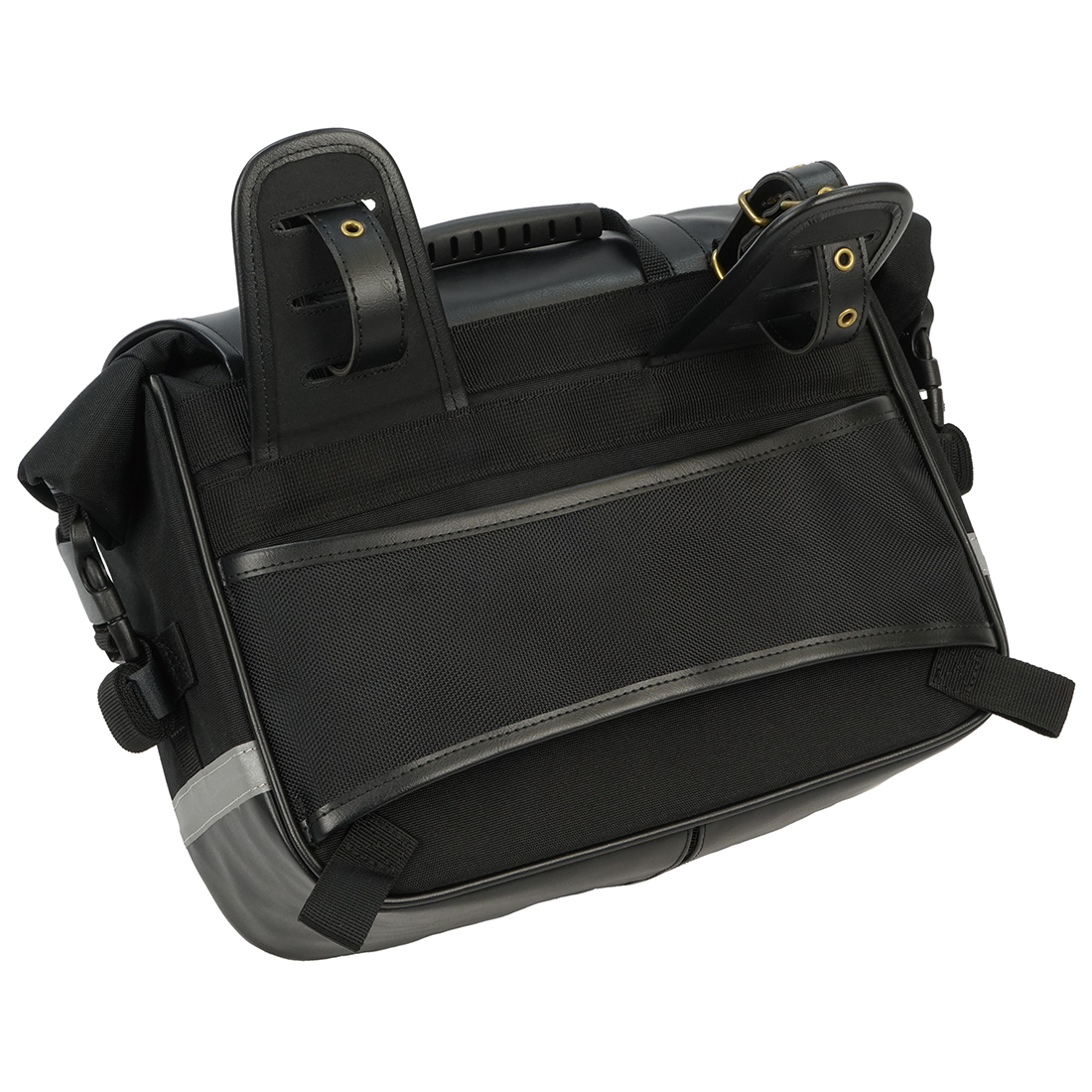 雨の日も安心なインナー防水シングルサドルバッグ「大きすぎず、小さすぎず、丁度いい」 ベストサイズの9.5Lインナーライナー式の防水仕様で急な雨にも対応できる安心のサドルバッグです。入り口はジッパーを閉めロールダウンして閉じる万全の防水仕様。ウインカー位置やタンデムステップの干渉を受けにくいサイズ設定でバイクのサイドに収まりやすい大きさに仕上げました。「大きいと取り付け場所を選ぶ。小さいと荷物が入らない」その間をバランスよくとりもった丁度良いサイズ。背部には貫通スリットを設けサドルバッグサポート等に差し込めば簡単にバタつきを防止できます。前後サイドにはリフレクタを配置し夜間の視認性も確保した安全設計です。カブやアメリカン、シングル向けにおすすめのサイズとデザインのシングルサドルバッグです。※フロントのスリットポケットは非防水です。