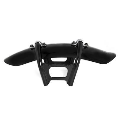 ボルトオンのフロントフェンダー。取付位置が上下でき、ファイアストーン等ハイトの高いタイヤでも装着可能。スタビライザーを兼ねたステーによるフロント剛性アップ効果もあり。今まで、ハイトの高いタイヤを装着した場合にフェンダーの装着が難しかったのですが、グッズ社のパイプワークフェンダーは問題無く装着が可能。今まで諦めていたフェンダー装着。チョッパーやボバースタイルにも違和感なく装着できるよう、出来る限りのシンプルで車体に馴染むようデザインされています。フェンダーレスで失ったフロントの剛性もこちらの商品で一発解消。サイズスタビライザー左右幅:188約mm 高さ:約138mm 前後幅:約165mmパイプ径:φ15.9mm フェンダー幅:約104mm フェンダー外周長さ:約410mm材質:フェンダー:FRP ステー:スチール内容物:フェンダー×1 ステー×1式 パイプワークスタビライザーx1【ご注意】※FIRESTONEタイヤは4.00サイズの併用可能を確認しております。※タイヤの種類やサイズが大きすぎる場合、装着が出来ない場合も御座います。※スタビライザーには前後の向きが御座います。高さのある方が前側になるように装着下さい。