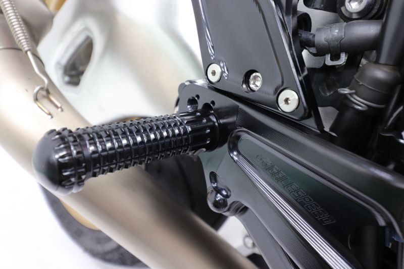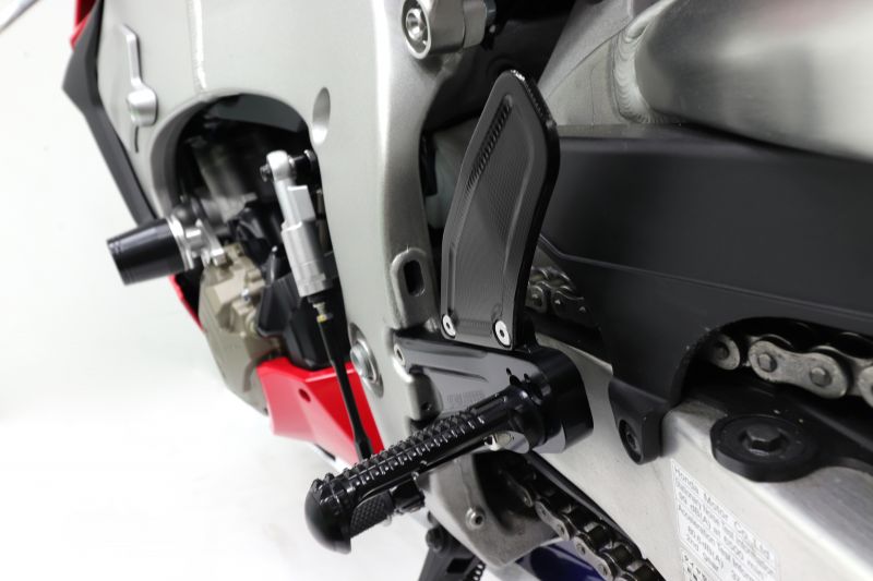 ストレスフリーなペダル操作へ。レースのために考えられた設計は、ストリートでも多くの利点があります。純正ポジションから最小限の位置変更で、サーキットからストリートまで楽しめるパフォーマンスを発揮。ステップワークを妨げる要素を徹底して排除し、操作性を追求しました。メインフレームと一体化したような剛性感、滑らかな操作感、機能美を追求したシンプルな外観をお楽しみください。材質:アルミ7075、(一部)6061フル3D切削加工逆シフトチェンジ対応(一部車種除く)ノーマルブレーキスイッチ移設設計チェンジペダル用エクステンション(10mm/20mm)付属ポジション1:BACK13mm、UP30mmポジション2:BACK13mm、UP42mmポジション3:BACK25mm、UP30mmポジション4:BACK25mm、UP42mm