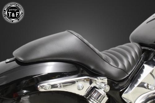 カラー:ブラック。シート表面:合皮製。シート裏:FRP製。シートインナー:発泡ウレタンフォームを使用。取り付けブラケット:スチール製。ブラック仕上げ。製品の特徴シンプルなデザインで飽きのこないスタイル。注意事項車体誤差によっては、フェンダー側に1カ所の穴あけ加工が必要になる場合がございます。一部、純正シートに付いている部品を使用して当社のカスタムシートを取り付け致します。(純正シートをお持ちで無いお客様は別売りのシートラバーをお買い求め下さい。)シートインナー(発泡ウレタンフォーム)は防水用の収縮する透明フィルムで覆われています。この特殊なフィルムは押したり、引っ張ったりしても簡単に破れるようなことはありません。このフィルム加工をすることにより雨水がウレタンフォームまで浸水することはありません。しかしながら表面合皮の縫い目から雨水が浸水し、ウレタンフォームとの間には雨水が入る可能性はございます。ただし、ウレタンフォームまで浸水することはありませんので良く乾いた布なので表面の水をふき取って頂き、天日干しして頂ければすぐに乾燥いたします。※十分な防水対策は施されておりますが完全防水ではございませんのでご了承下さい。