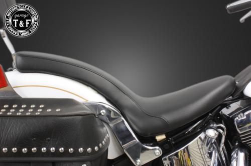 製品の仕様シート素材:合皮製。シートベース:FRP製。シートインナー:発砲ウレタンフォームを使用。シートカラー:ブラック。取り付けステー:スチール製。ブラック仕上げ。製品の特徴クッション性を失わず衝撃吸収性も非常に高い一体型ウレタンフォーム(スポンジ)を使用し、型崩れしにくく快適に乗る事が出来ます。シートベースには軽量で頑丈なFRPを使用しております。フォームと表皮の間には収縮するフィルムを包装し、防水面も考慮しております。適合モデルソフテイルファットボーイ(FLSTF)の2002年〜2006年モデルまで。ソフテイルヘリテイジクラシック(FLSTC)の2002年〜2017年モデルまで。ソフテイルヘリテイジインジェクション(FLSTCI)の2002年〜2006年モデルまで。ソフテイルヘリテイジ(FLST)の2006年モデル。ソフテイルヘリテイジスブリンガー(FLSTS)の2002年〜2003年モデルまで。ソフテイルヘリテイジスブリンガーインジェクション(FLSTSI)の2002年〜2003年モデルまで。ソフテイルデラックス(FLSTN)の2005年〜2017年モデルまで。ソフテイルデラックススブリンガー(FLSTSC)の2005年〜2007年モデルまで。注意事項シートインナー(発泡ウレタンフォーム)は防水用の収縮する透明フィルムで覆われています。この特殊なフィルムは押したり、引っ張ったりしても簡単に破れるようなことはありません。このフィルム加工をすることにより雨水がウレタンフォームまで浸水することはありません。しかしながら表面合皮の縫い目から雨水が浸水し、ウレタンフォームとの間には雨水が入る可能性はございます。ただし、ウレタンフォームまで浸水することはありませんので良く乾いた布なので表面の水をふき取って頂き、天日干しして頂ければすぐに乾燥いたします。※十分な防水対策は施されておりますが完全防水ではございませんのでご了承下さい。※適合不可モデルソフテイルデュース/インジェクション(FXSTD/FXSTDI)。