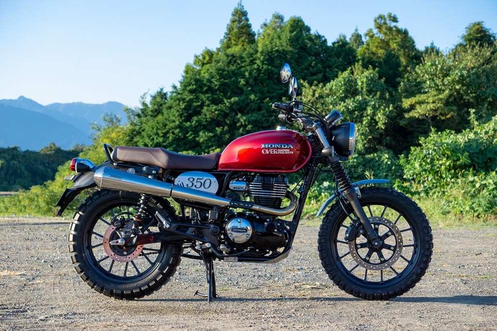 GB350が持つクラシカルなイメージを尊重しつつ、スクランブラースタイルへとカスタム。オーソドックスな雰囲気を保ちつつ充分な性能を発揮させるため、オーバル形状のメガホンサイレンサーを新造。エキパイがエンジン横を通るアップマフラーにすることで最低地上高を稼ぎ、オフロードでの走破性能を向上させました。スムーズなスロットルレスポンスは極低速域での操作性を改善し、障害物を乗り越える際やUターンを行う際の不安感を軽減。安定感をもたらします。ロングツーリングや早朝/深夜帯の走行を加味し、音量は純正+α程度に抑えつつ、シングルらしい鼓動感のある心地よい音質を実現しました。OVER Racingが提供する新しいスタイルのGBをぜひお楽しみください。ステンレスエキパイ:φ45.0ステンレスサイレンサー :オーバルメガホン L390mm重量:4.51kg(STD:6.72kg)音量:88db(近接)/79db(加速)政府認証マフラー(対応型式:2BL-NC59)H28年度騒音規制,H28年度排ガス規制 対応ドレンボルト:OKフィルター:OKタンデム:OK(タンデム時の火傷には十分注意してください。)最低地上高:200mm(純正カタログ値:166mm)