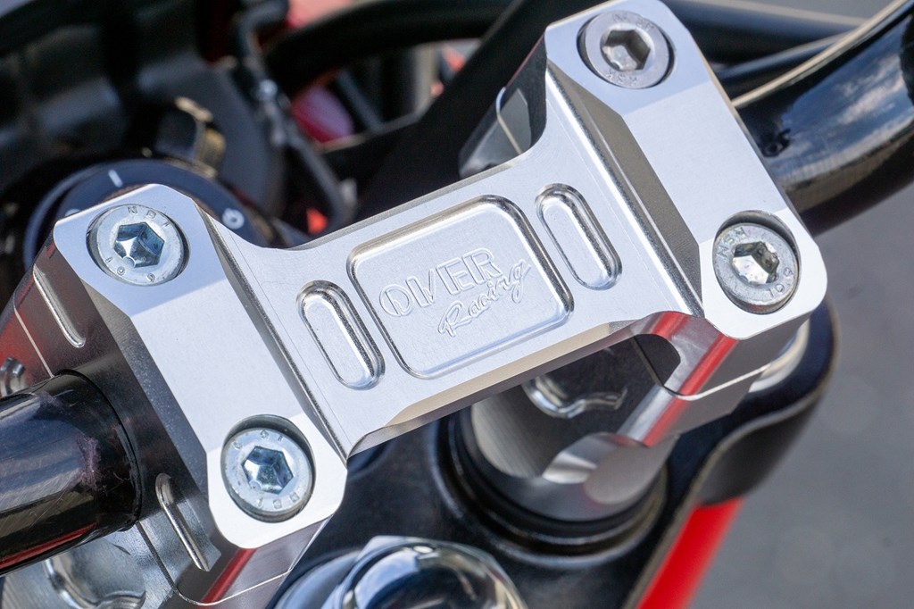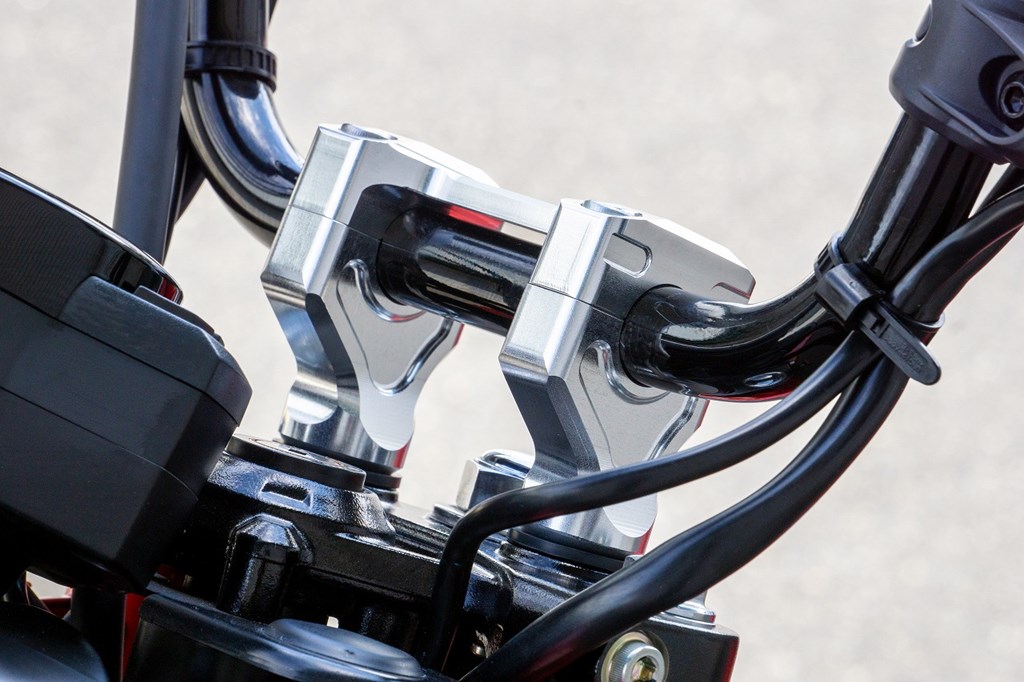 ハンドルを上方&前方へ移動させることで上体の窮屈さを改善。Uターンなどの旋回時でも肘と膝が当たりにくく、安心して操作することが出来ます。クランプを左右対称なデザインとすることで、違和感のない2ポジションを可能としました。2段階調節STD比:10mmアップSTD比:15mmアップ、9mmフォワードシルバーアルマイト仕上げSTDトップブリッジ対応STDワイヤー&ホース対応クランプ部22.2mmハンドルバー対応