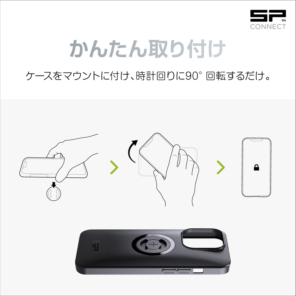 iPhone 14 Pro用 フォンケース90°捻るだけで固定できるSPコネクト独自の機能。【SPC+になって40%薄く・25%強くリニューアル】・40%薄く、フラットな背面のケースにリニューアル。机上に安定して置くことができます。・MagSafe対応。ワイヤレスチャージングモジュールを使用すれば、オートバイ装着時も高速ワイヤレス充電が可能です。・新型マウント「SPC+」は、はめ合い面積25%アップ。iPhone 14 Pro用 フォンケース(SPC+)新型クランプ「SPC+」採用。従来型クランプ「SPC」に対応する変換アダプター付属MagSafe対応で、オートバイ装着時も高速ワイヤレス充電が可能90°捻るだけで固定できるSPコネクト独自の機能商品構成:フォンケース×1、変換アダプター×1※【SPC】用変換アダプタ―が付属します。ただし、ケース付属のアダプターは樹脂製のため、【SPC】にご使用の場合は早めにマウントヘッドをアルミ製のSPC+用(品番:34192)へ変更することをおすすめします。※MagsSafeのロゴは、米国および他の国々で登録されたApple Inc.の商標です。
