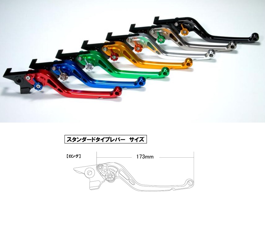 レバー本体カラー:ブラック(ツヤあり)サイズ:レバー部全長 約173mm素材:6061アルミ材※アジャスターカラーを8色よりお選びください。U-KANAYAの製品は元GPライダーの金谷秀夫氏と内商会のコラボレーションによる商品です。内商会の管理の下で精密加工しております。U-KANAYAの全商品は、日本国内にて専門のスタッフが製品の組み立て及び検品を行っておりますので、安心してご使用いただけます。スタンダードタイプレバーの特徴レバー本体の肉抜きにより軽快なデザインアジャスト機構のツマミデザインの変更による操作性の改善レバーエンド形状の最適化によりバーエンドへの接触を極力おさえる構造商品説明高強度・耐食性に優れた6061アルミ合金を使用。粗悪なアルミ材を使用した安価なビレットレバーとの違いは一目瞭然です。精密なフルマシニング加工により高級感のある仕上がりとなっています。純正のレバーと入れ替えるだけで簡単に装着可能です。車種によっては純正の部品を流用します。純正レバーと比べてレバー位置が手前にくるため力を掛けやすい形状になります。手の小さい方や純正レバーを遠くに感じていた方に特にお勧めです。カチッとしたクリック感の良いワンタッチアジャスターによりレバー位置を近くから遠くまで6段階で調整可能。レバー先端部分で約30mmの調整幅があります。レバーの長さは約173mmです。 ※アタッチメント部は含まず。内商会独自の管理システムを導入していますので、万が一のアクシデントによる破損部品の部品供給にも迅速に対応可能です。補修部品も細かく設定されているので、破損部品の供給もスムーズです。商品は予告なしに価格や仕様を変更する場合がありますのでご了承ください。純正のクラッチレバーホルダーカバーが付いている車輌の場合、一部加工または取り外しが必要な場合があります。モニターの環境により、画像の色が実物と若干異なって見える場合がございます。画像はイメージです。取付アタッチメントの形状が実物とは異なる場合があります。※ロングレバーは車両全幅を超える場合あります。 取り付け時は、車検証の車両全幅を確認し必要であればマスターシリンダー、クラッチレバーホルダーを動かし調整が必要となります。